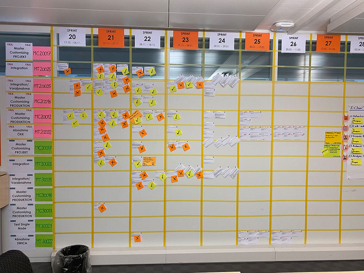 Aufgrund dieser positiven Erfahrung haben wir vom Konzern das Go erhalten, ein Digitalisierungs- und Print Projekt (Umfang 21 Mio.) mit verteilten Teams und Komponenten nach Scrum umzusetzen. Auch diese Hürde haben wir genommen und dem Konzern innerhalb von 18 Monaten eine komplette neue Digitalisierung und Print Lösung bereitgestellt. Seit 2016 setzt das Versicherungsunternehmen bei 70 % Ihrer Projekte auf Scrum oder das SAFe Framework als Projektmethodik.