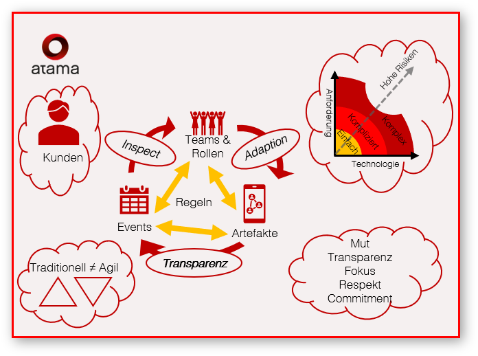 - Überblick über Scrum erhalten, Schwerpunkt: Rollen- und Führungsverständnis von Product Owner, Scrum Master und dem Team vermitteln